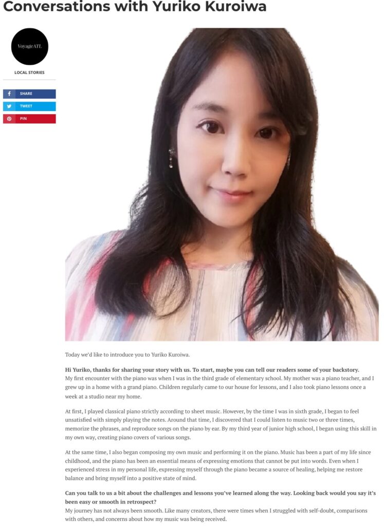 思いがけないご縁で、アメリカアトランタのウェブメディアで有名な「Voyage ATL」に、私のピアノ活動について取り上げていただきました。